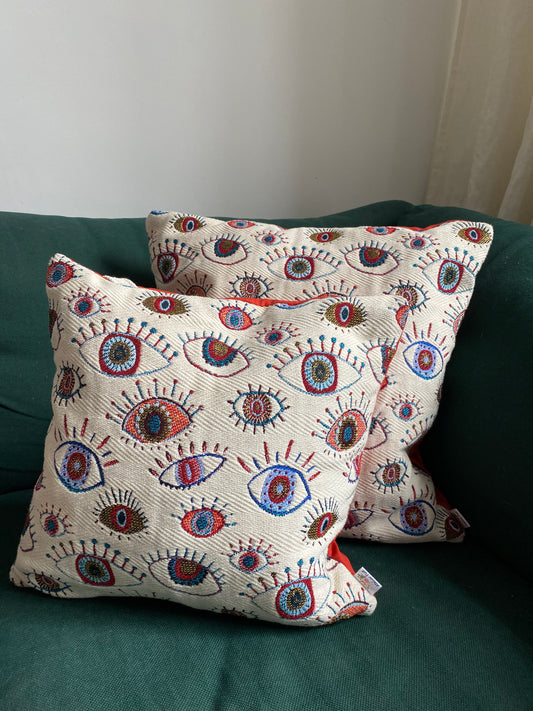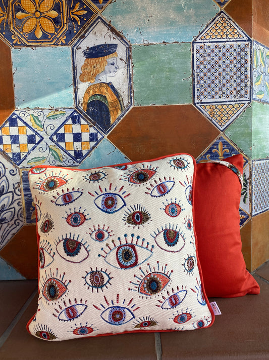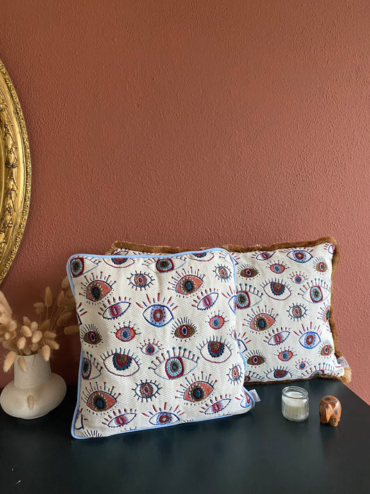 UitverkochtAll eyes on you kussen met terra cotta bies